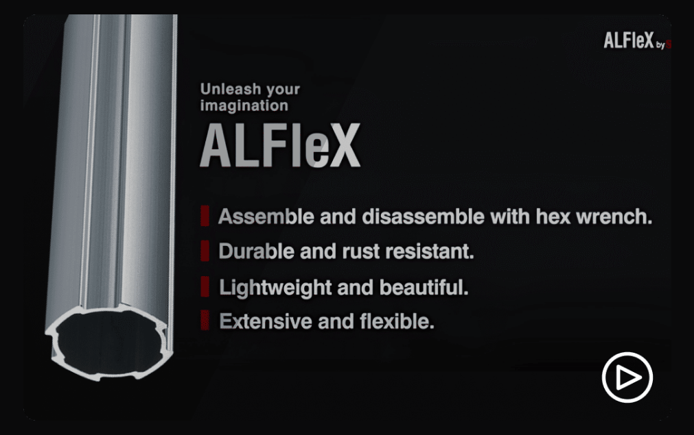 “ALFleX” is an expandable system that transforms your imagination into actual shapes, simply by connecting the “GF” with various kinds of connectors and accessories. By tightening the pre-installed bolt with a single Hex wrench, you will experience immense joy in bringing your own ideas to life.