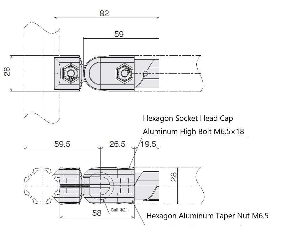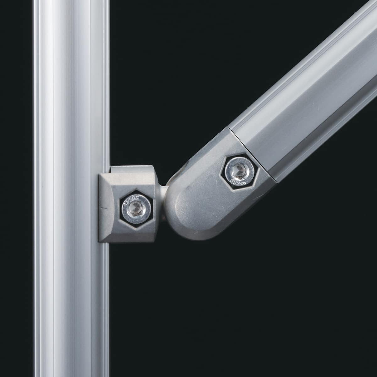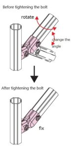 A pipe can be mounted at any angle. The angle can be fixed just by tightening the bolt. The connector is to be inserted into the pipe.