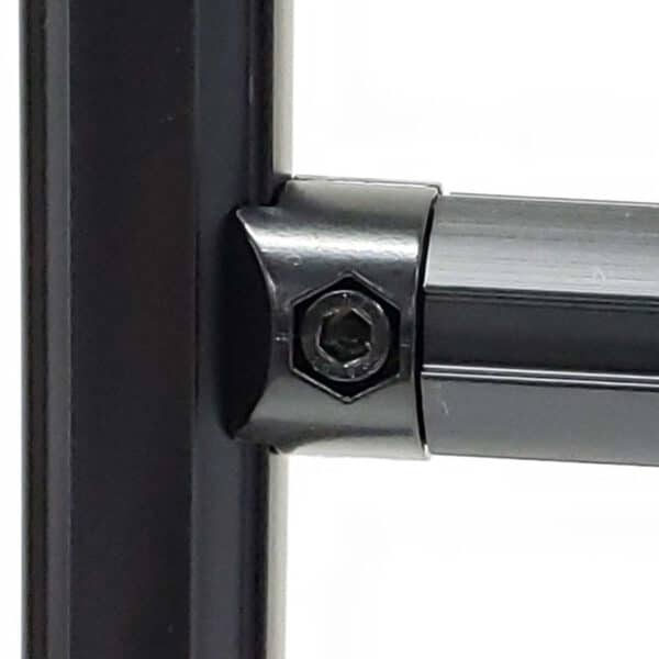 Parts to connect two pipes at 90 degree angle. The end of the part is inserted into the pipe. (Black) The pipe can be rotated and fixed in any direction.