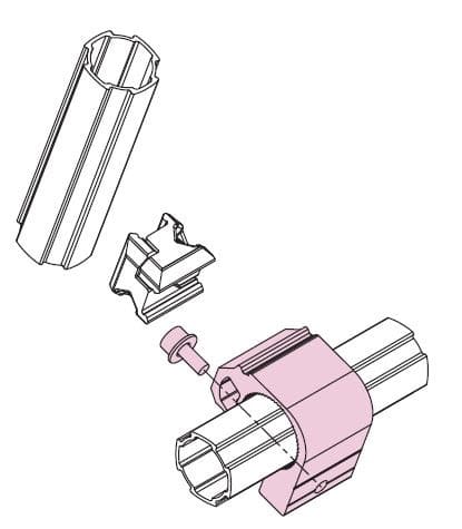 This part is used together with a cross connector. The tool bracket can rotate and be fixed by the attached bolt.
